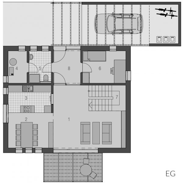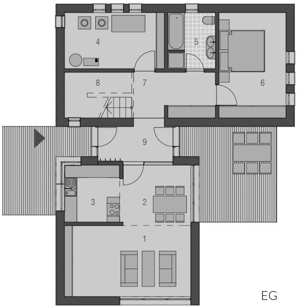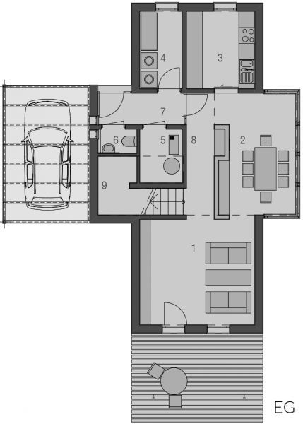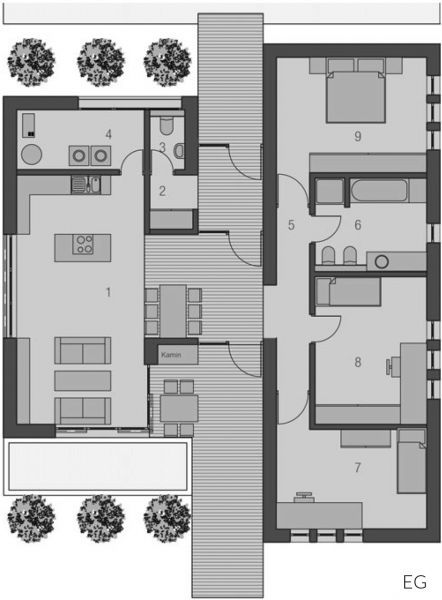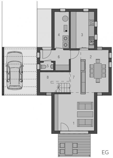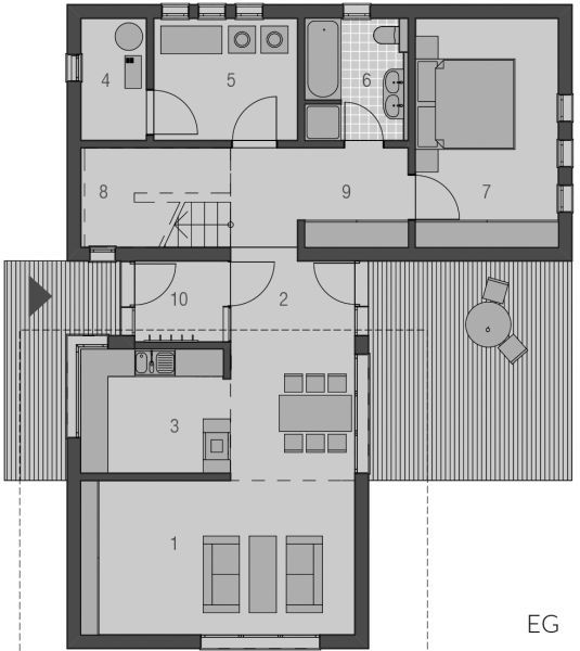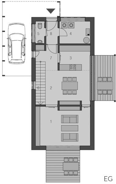 Der Haustyp "Strandgras" offenbart modernes Wohnen auf einer Ebene. Privat- und Wohnbereiche werden hier geradlinig separiert. Neben dem geborgenen Eingangsbereich gibt es einen hochwertig geschützten Freisitz, welcher dem Wohnzimmer zugeordnet ist. Ob als Single oder auch als Paar - dem Traum vom modernen Wohnen steht hier nichts mehr im Wege.