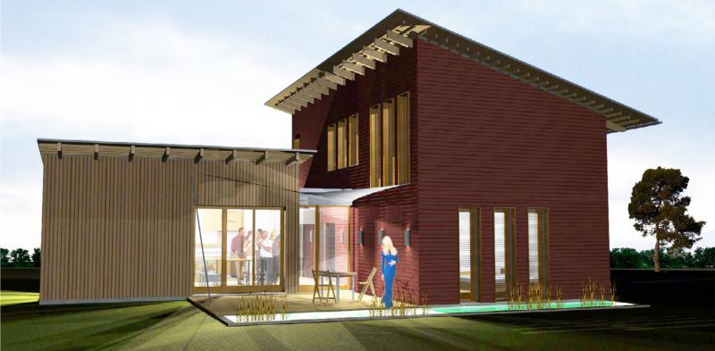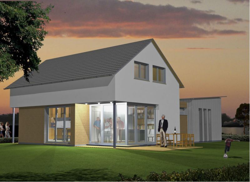 Ein dynamischer Grundriss, verbunden mit einer zeitlosen Ästhetik.Die drei Pultdächer stehen symbolisch für die bis zu drei Generationen, die gleichzeitig in dem Haus "Seestern" Platz finden. Separate Ess- und Wohnbereiche kombiniert mit den gemeinschaftlich genutzten technischen Anlagen und Nebenräumen sorgen für eine effiziente Nutzung der Ressourcen.