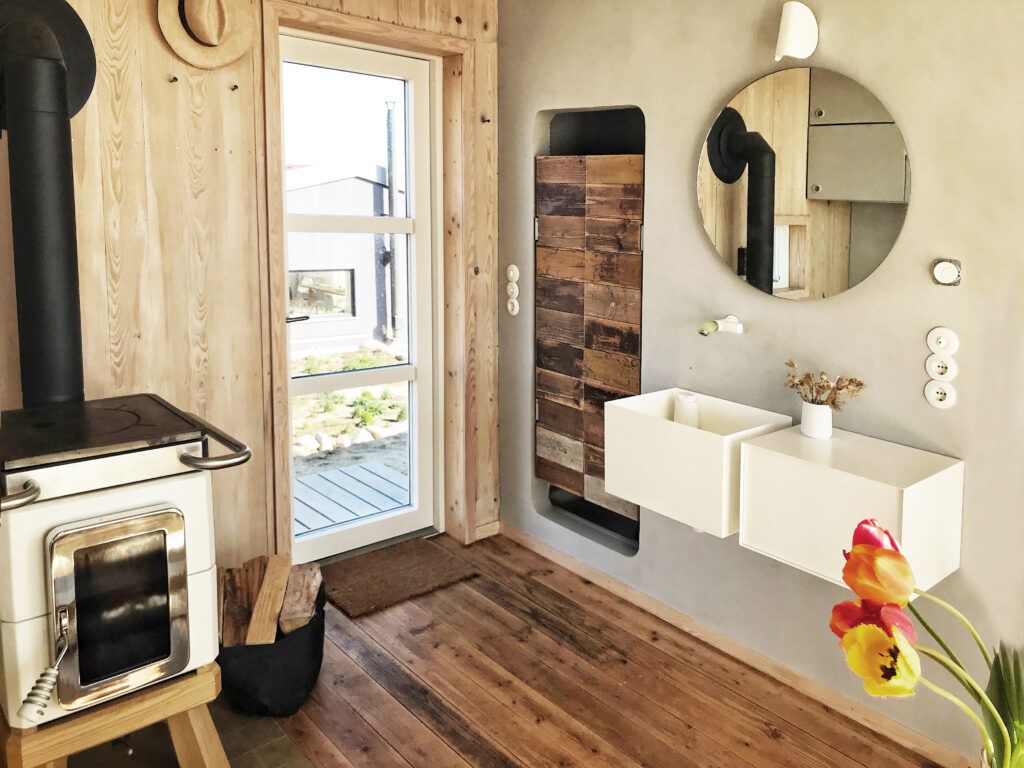 - Wandaufbau: Holzprodukte, Lehm